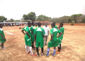 Teams at half time break, coaches assigning them new strategies.